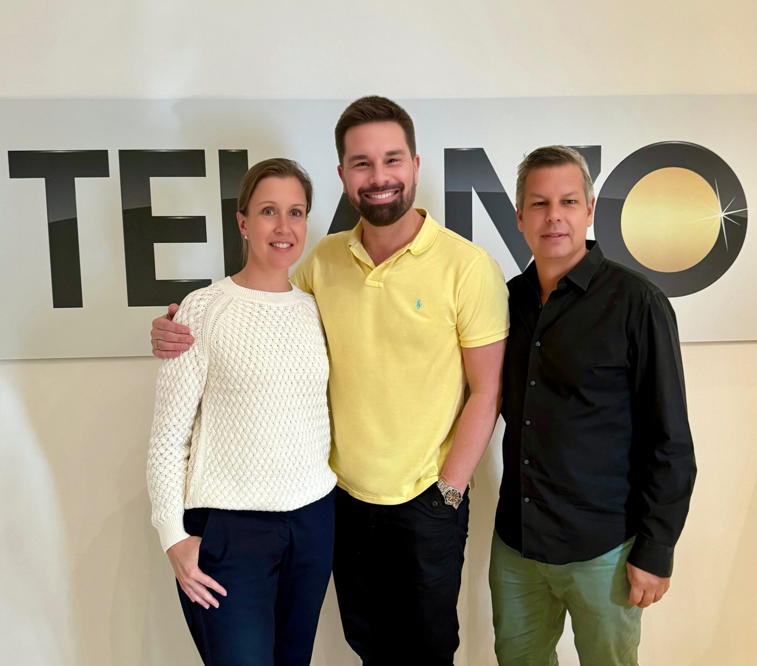 Auf dem Foto (v.l.n.r.): Birte Goldbrunner (TELAMO-Senior Director Marketing & Promotion), Eloy de Jong, Ken Otremba (TELAMO-Geschäftsführer) © Telamo